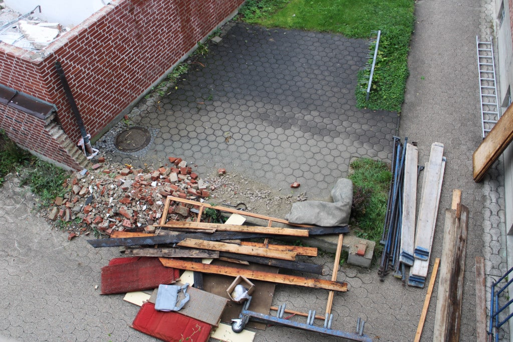 Da der Umbau des Eingangbereichs nun los geht, kann die Eingangstüre natürlich nicht mehr als Fluchtweg genutzt werden. Es stünde uns somit nur noch ein Fluchtweg über den hinteren Eingang zur Verfügung.